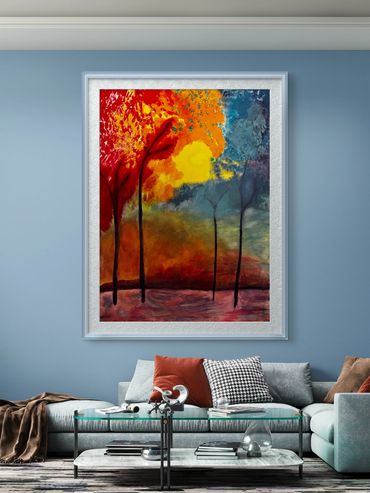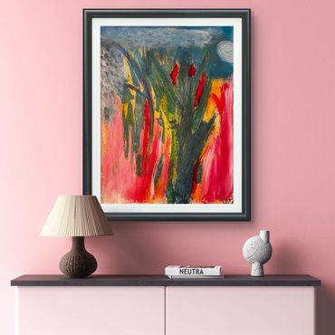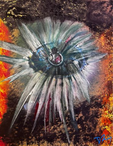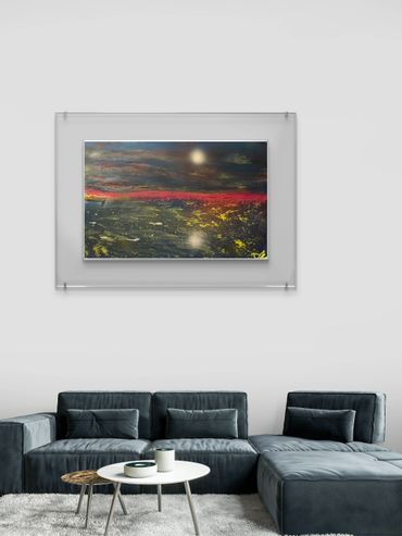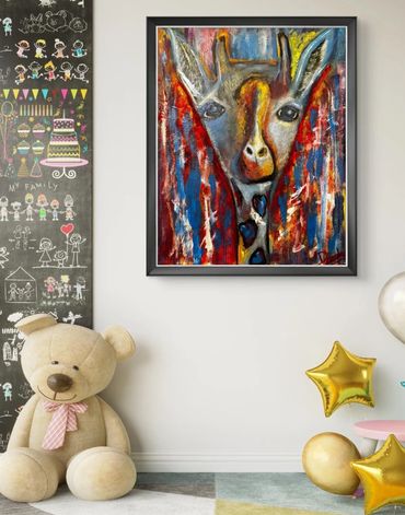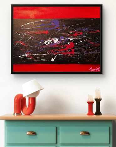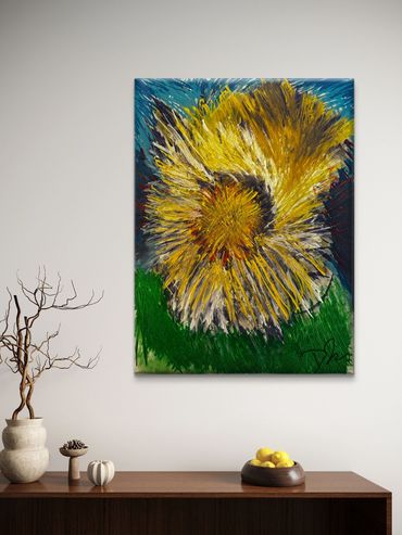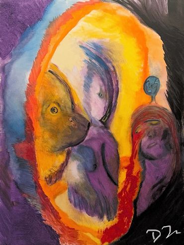 I mix multiple mediums such as acrylic, watercolors, and spray paint on canvas that produce stunning digital prints. Few, not many, include A.I. prints designed from my original artwork.